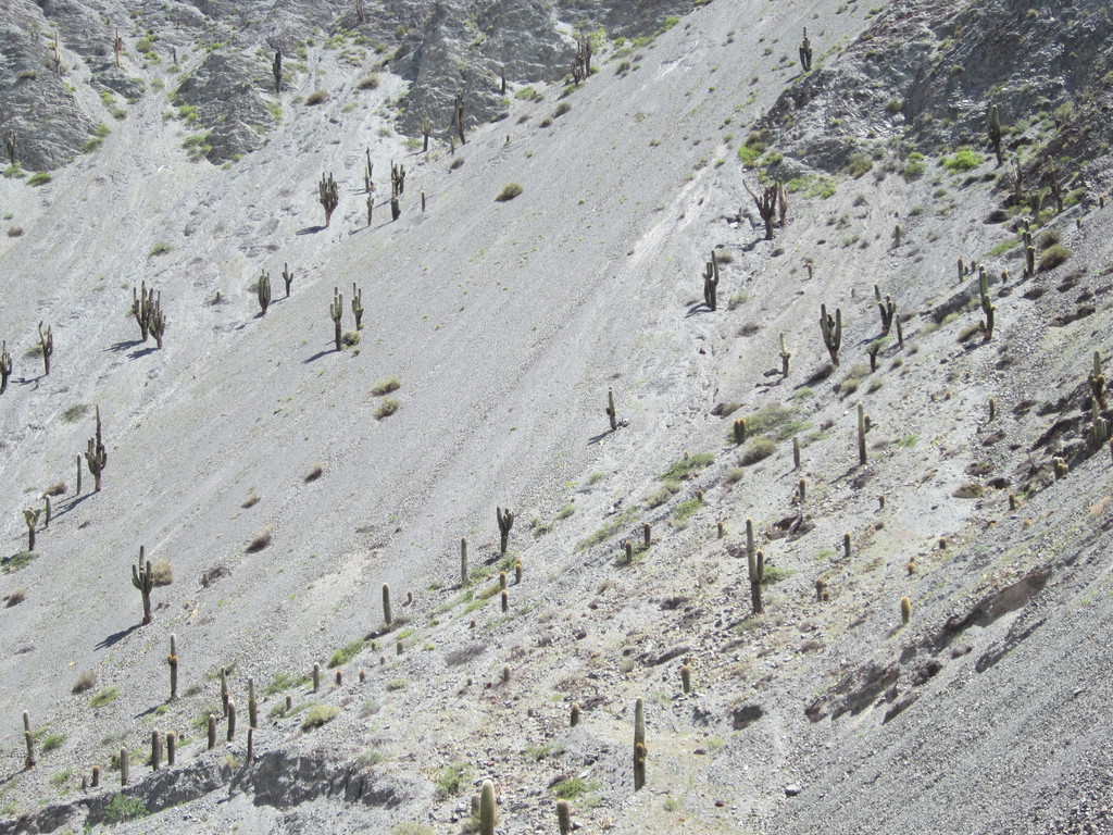 Auf dem Weg zurück, ca. bei 1800 Metern, stolperten wir während der Fahrt über Cleistokakteen an den Felswänden neben der Straße. Auch das wird morgen näher in Augenschein genommen.