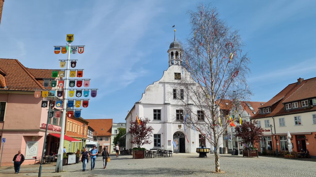 Nach dem Verlassen der Petri Kirche wurde noch rasch das Rathaus aus der Nähe bestaunt und beim lokalen Bäcker ein Heißgetränk und etwas Gebäck eingenommen. Dies sollte als Stärkung für den Rückweg reichen. Bei bis zu 26 Grad ging es dann ab nach Hause. Kurz vor dem Ziel fiel die Temperatur noch um zehn Grad und der langersehnte Regen begleitete uns bis zu dem Eintreffen in unserem Dorf. Am Ende des Tages: leicht ermattet, glücklich und erholt.